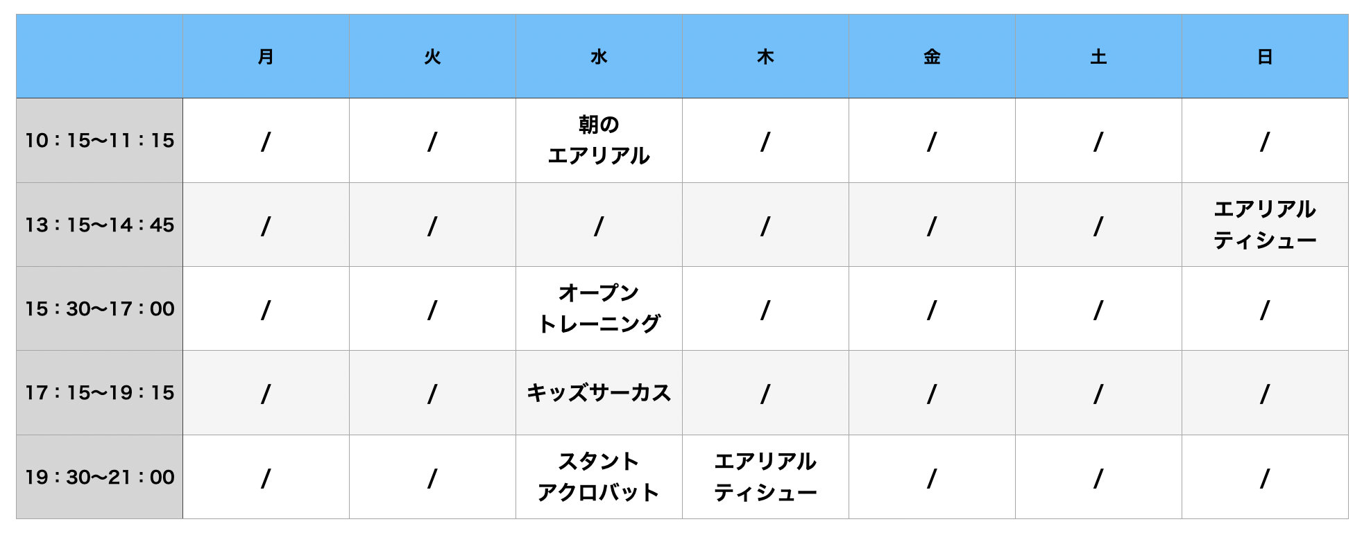スクール営業日 | 水曜日 10:00-11:30 / 15:30-21:00 木曜日 19:30-21:00 日曜日 13:15-14:45 |